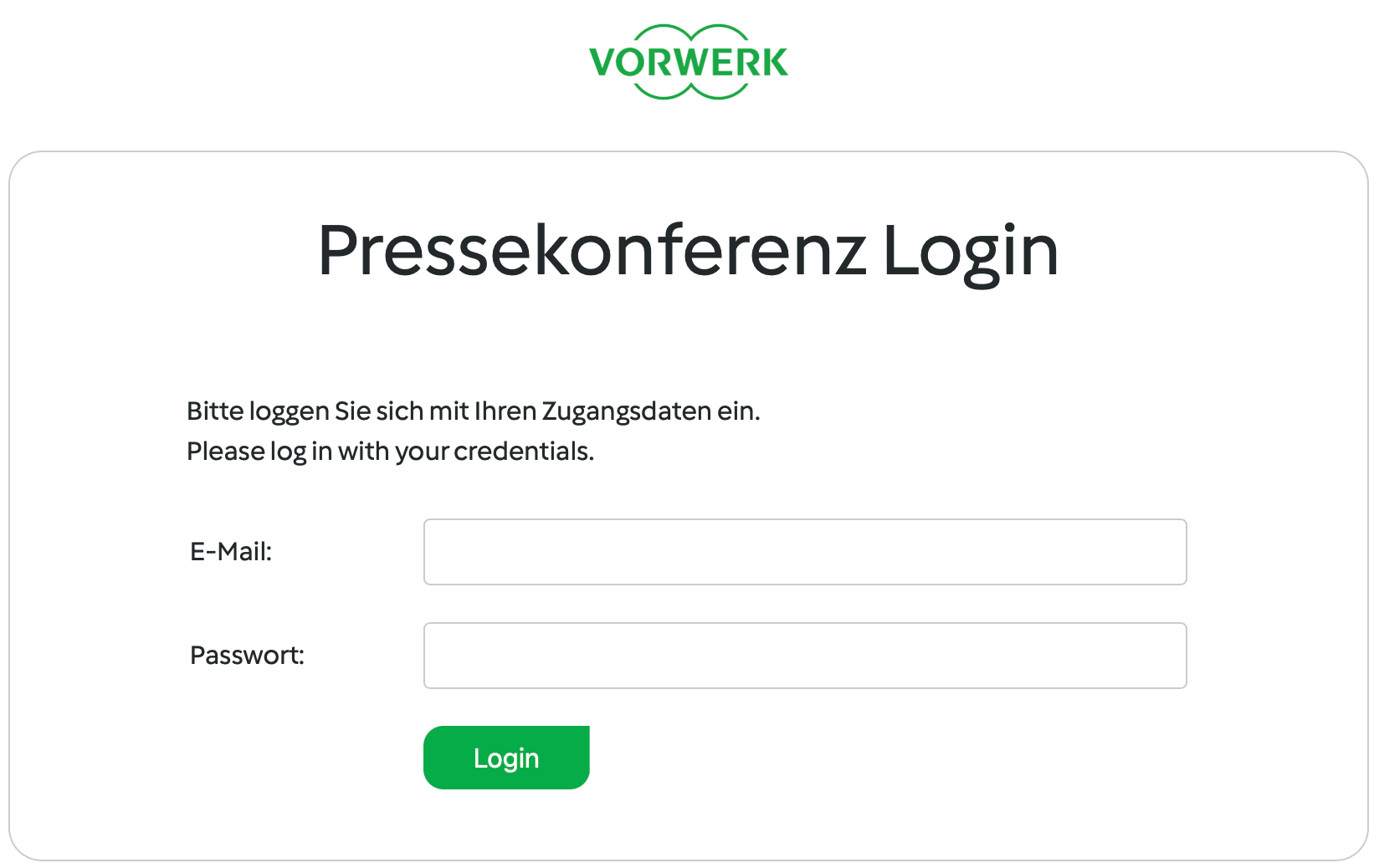 Login für Journalisten zur Vorwerk Pressekonferenz im Mai 2023